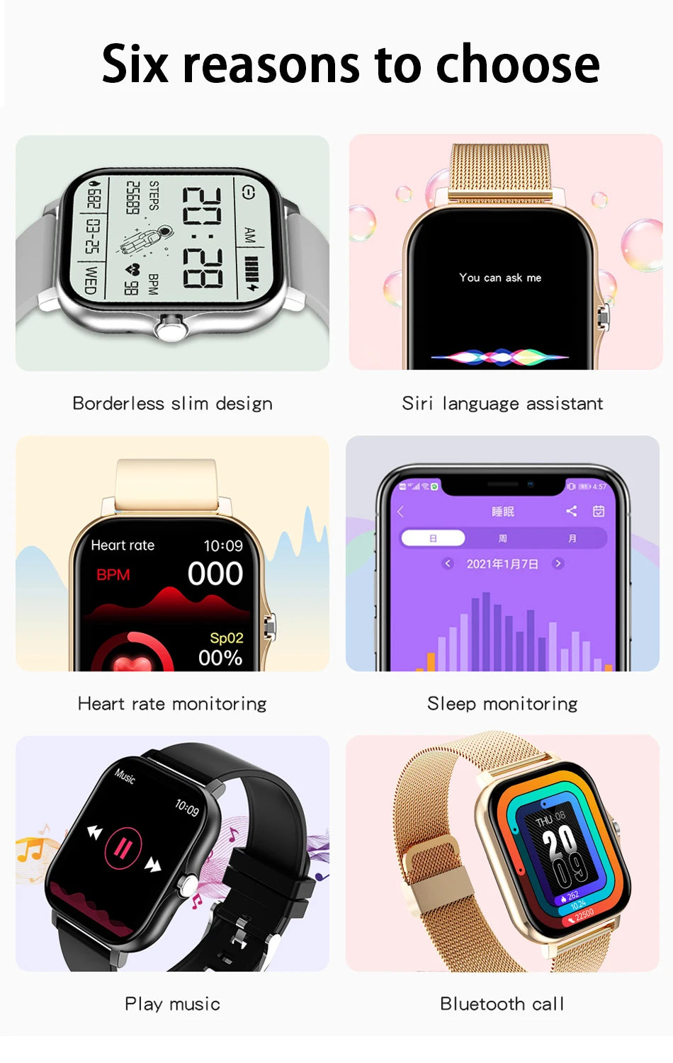 Multiple dials,continuously updated. You also can upload your photo as watch dial.Health Monitoring: