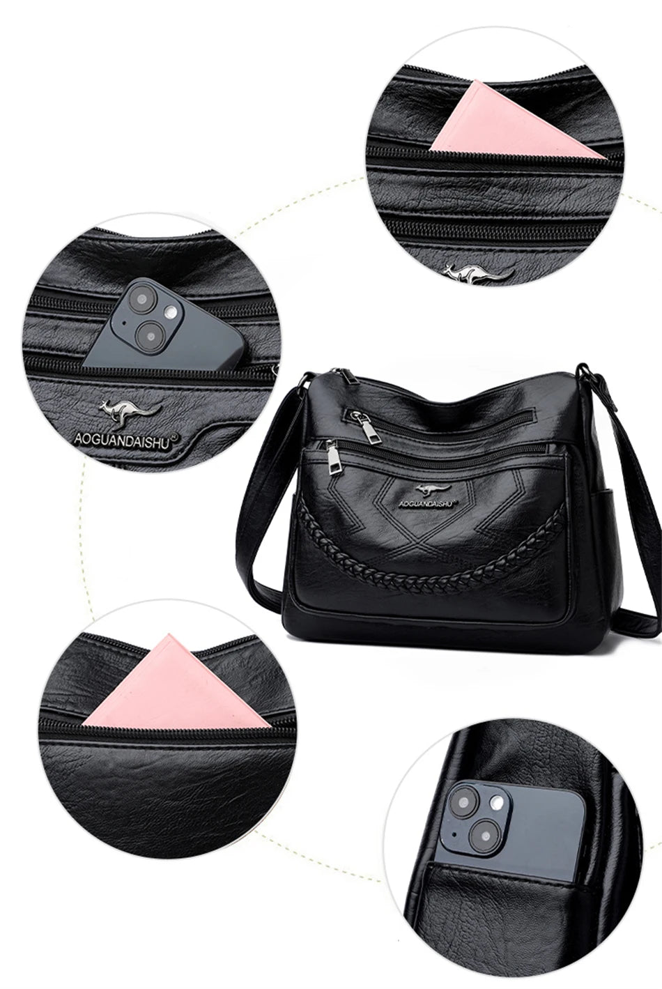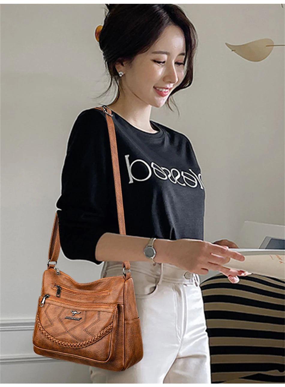 Women's Vintage Soft Leather Shoulder Bags Multi-Layer Classic Crossbody Bag Luxury Designer Handbag and Purse 2022 Trend Sac