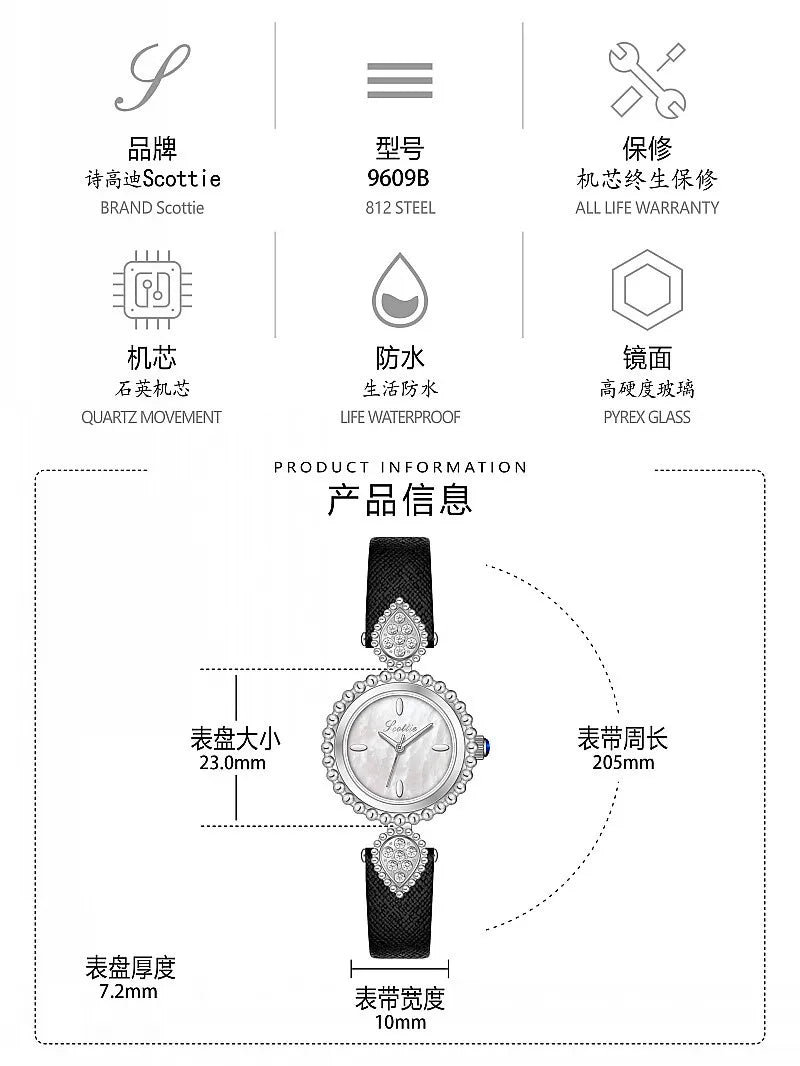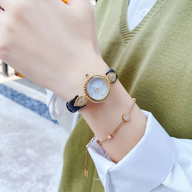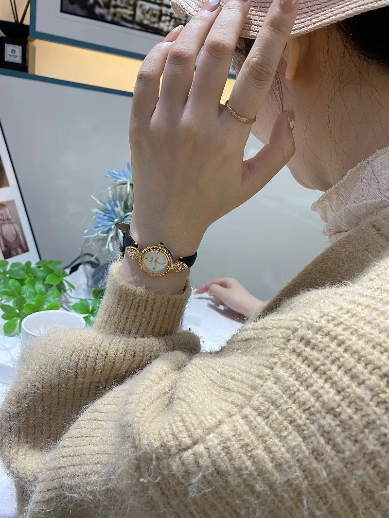 UTHAI Women Watch Light Luxury Brand Shell Faced Diamond Watches Waterproof Leather Strap Ladies Fashion Quartz Wristwatch gift
