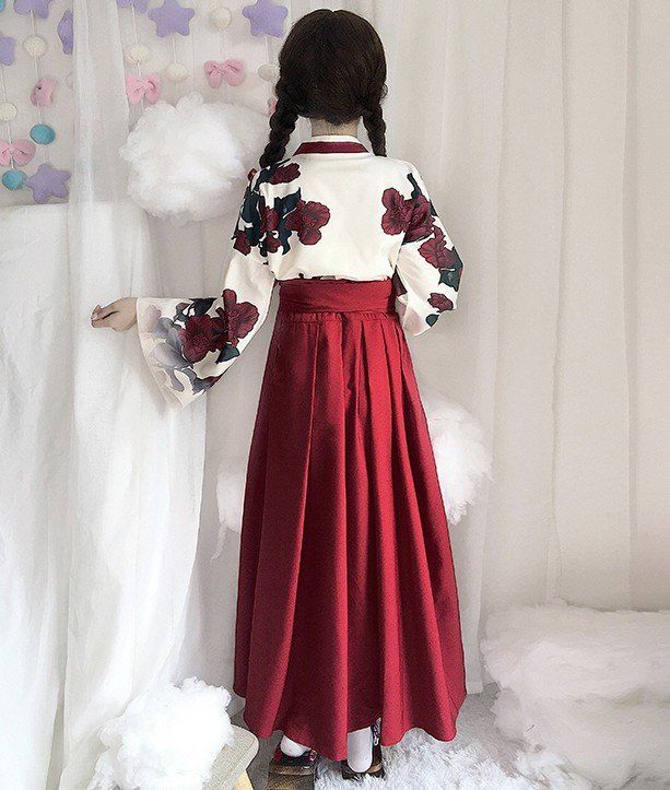 Jeune fille de style chinois avec jupe à col et costume d'étudiante Hanfu