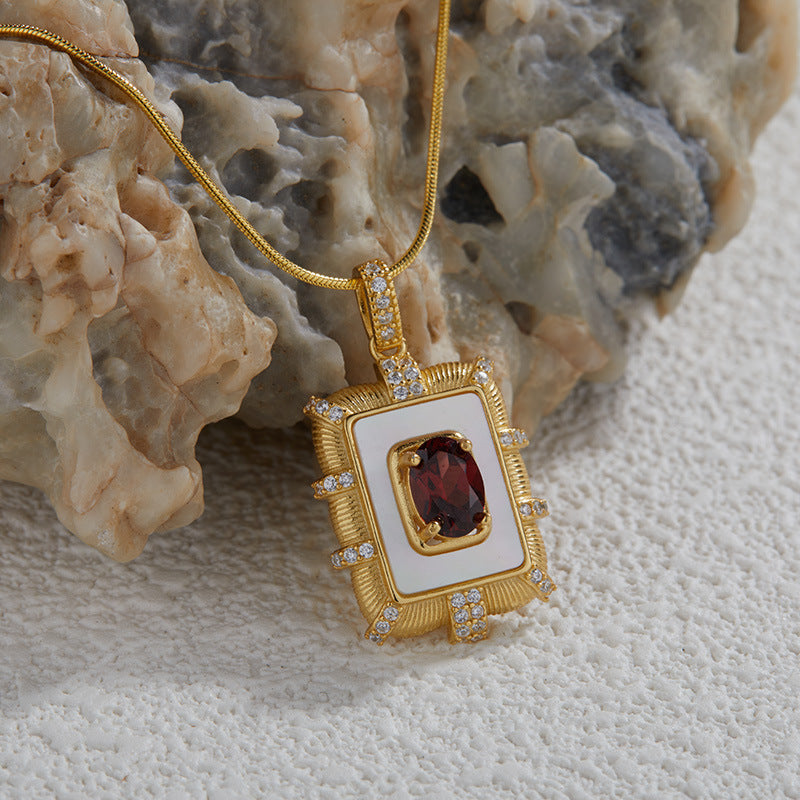 925 Sterling Silver Inlaid Natural Gemstone Necklace