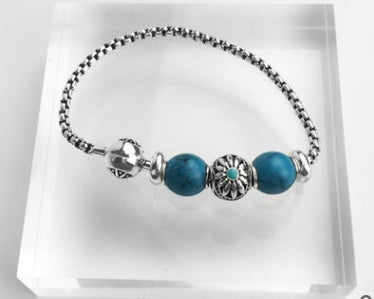 Bracelet Blue Beaded 925 Silver