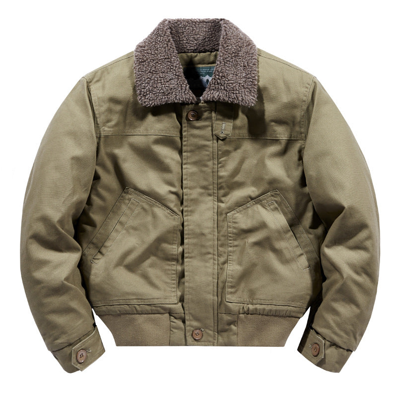 Fall Winter Men Cotton Cashmere Lapel Cotton Jacket