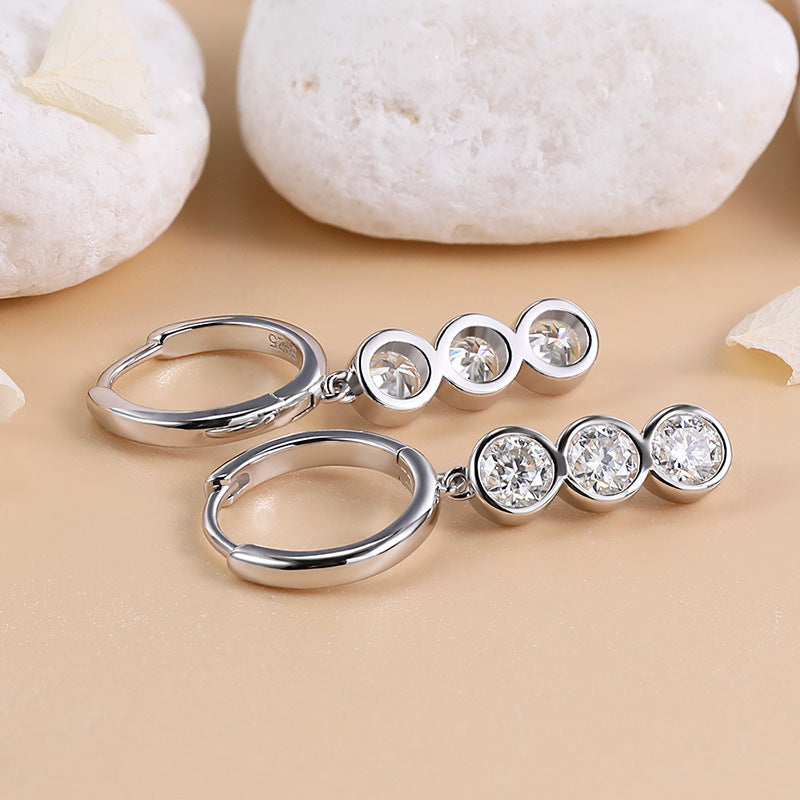 Fashion Moissanite 925 Sterling Silver 18K Gold Plating Elegant Three Stone Bubble Earrings