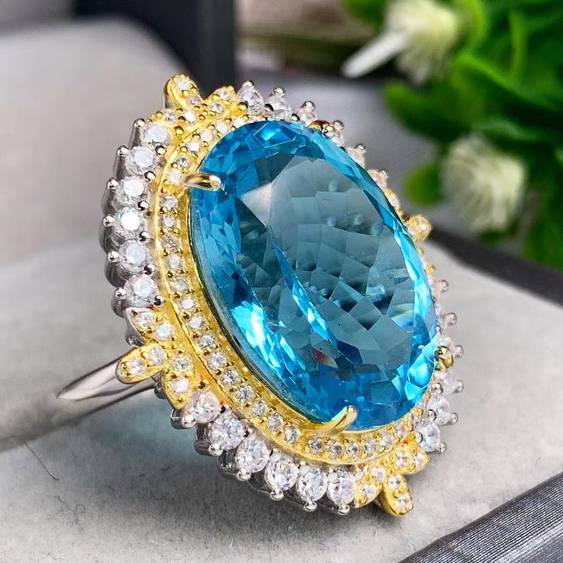 Natural Blue Topaz Ring Body Inlaid S925 Silver Jewelry Design Simple Female Accessories
