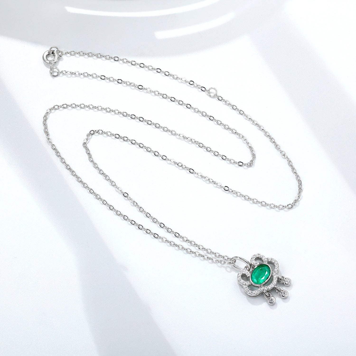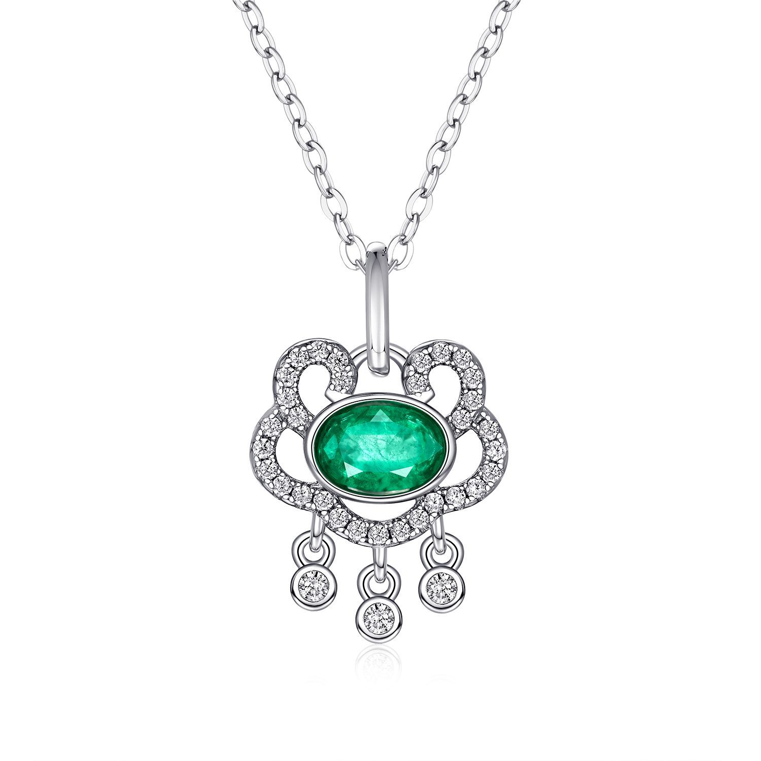 Natural Emerald Necklace Women's 925 Silver Full Set Delicate Light Luxury Pendant Auspicious Cloud Safety Lock Pendant Jewelry