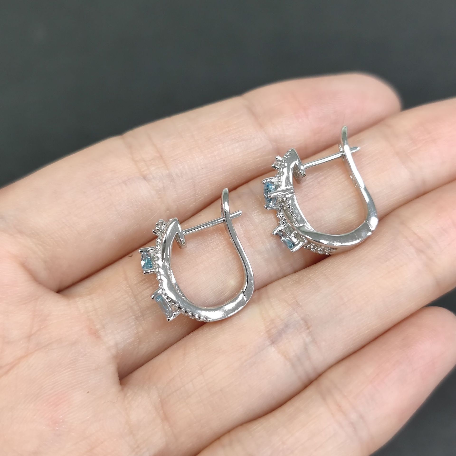 Color: Natural London blue topaz earrings, natural green chalcedony earrings, natural blue Switzerland topaz blue topaz earrings